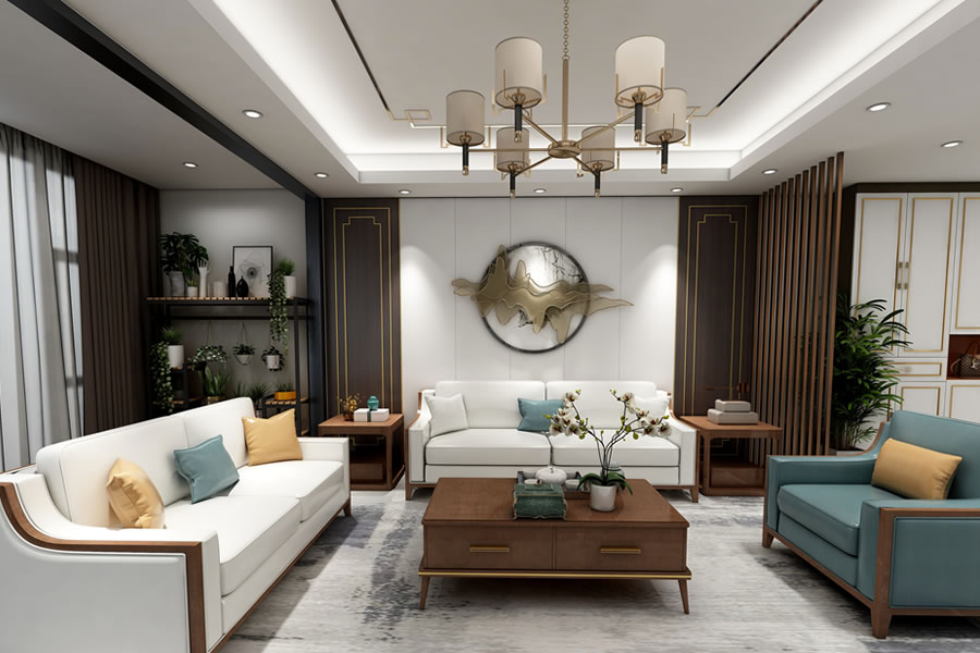 客廳家具:新中式客廳家具以簡約、大氣為主,注重實用性和舒適性。常見...